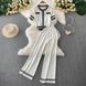 Women's Clothing Temperament Contrast Color Round Neck Short Sleeve Knitted Top Casual High Waist Slim Straight Wide Leg Pants Two Piece Set