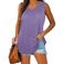 Women's Clothing V Neck Swallowtail Sleeveless Solid Color Vest T Shirt