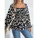 Tired of basic tops that fade into the background? This leopard print blouse is your secret weapon – the perfect balance of fierce animal print and delicate scalloped detailing. The wrap waist design flatters every curve, while the bell sleeves add a touch of bohemian whimsy.