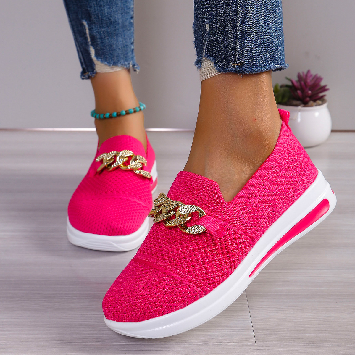 Pantofi de damă, mărimi mari, pantofi casual pentru femei, primăvara 2024, mocasini cu cap plat și rotund, mărimea 43, pantofi de damă respirabili, țesuti, cu model zburător