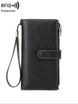 Womens Solid Color Long Wallet Fashionable PU Leather Zipper Wallet With Wrist Strap Multi-functional Card Holder For Daily Use, RFID Blocking Wallets