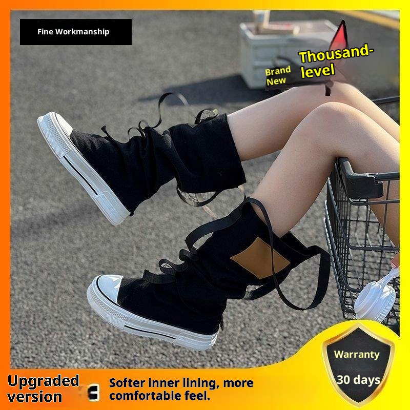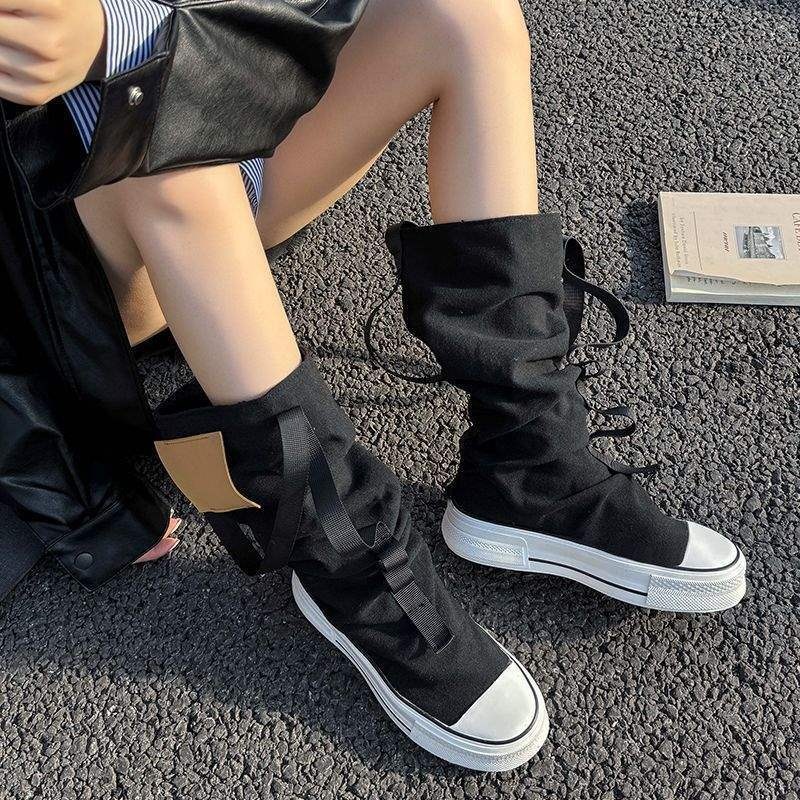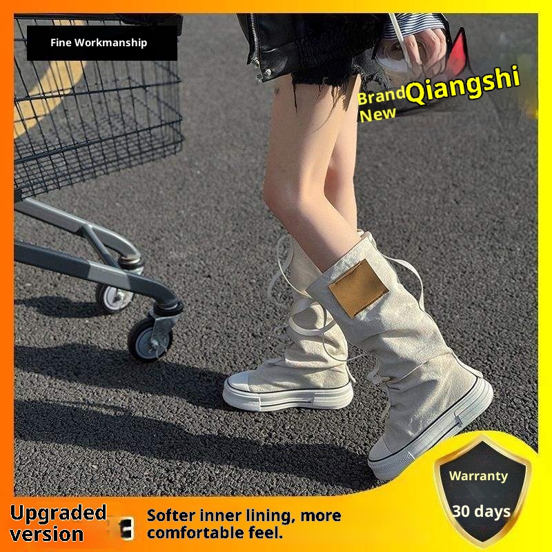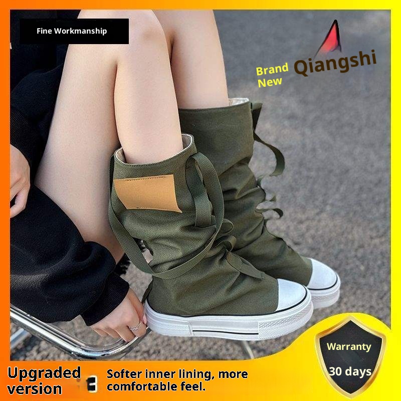 Women's Summer 2025 New European Style Niche Canvas Slouch Thick Sole Workwear Western Cowboy Boots