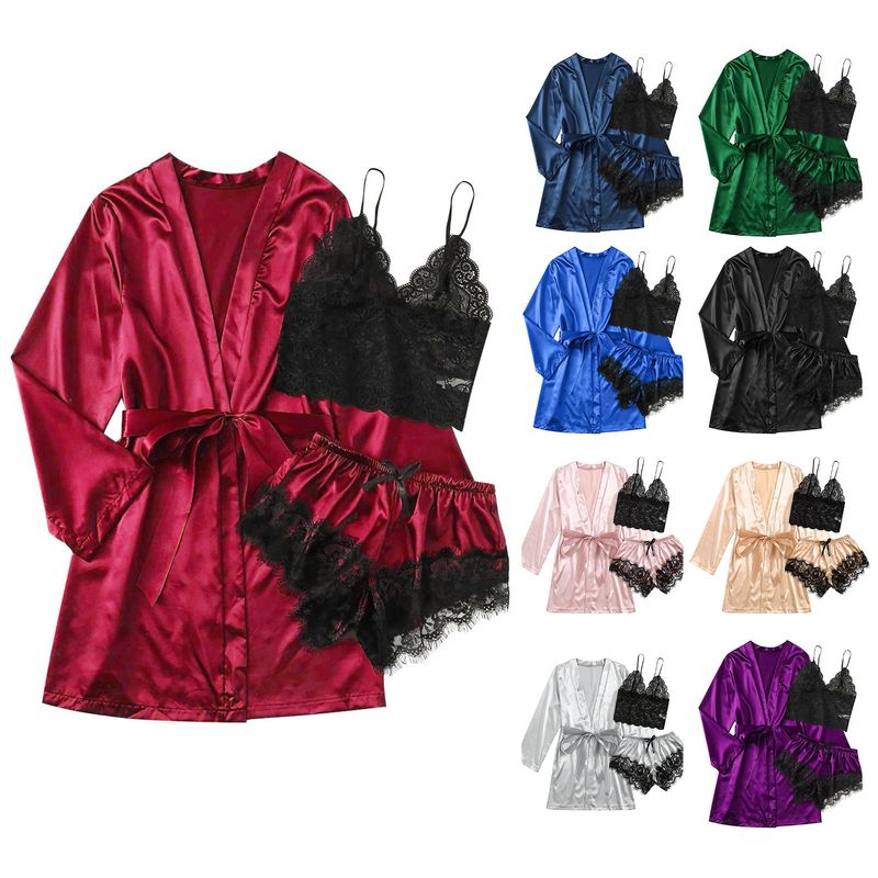 Women's pajamas, underwear, 3-piece set with lace straps, pajamas, women's summer set, pajamas, and pajamas
